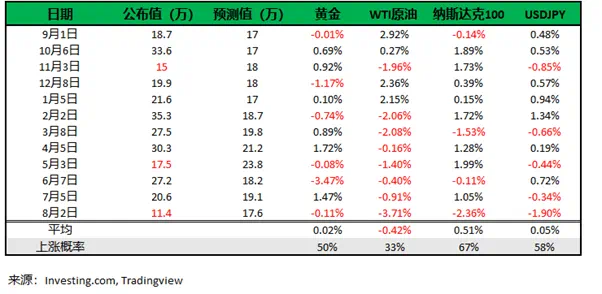 若就业报告好坏不一,失业率可能具有更高的影响权重。高于预期且持续升高的失业率或再次引发避险情绪。