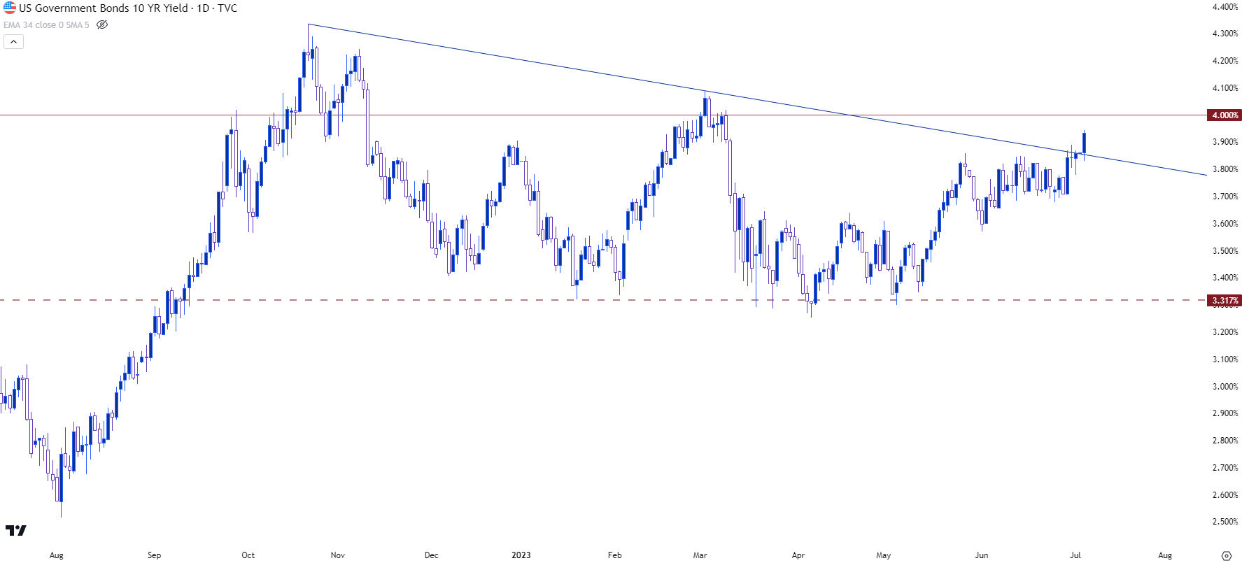 随着今天即将发布会议纪要,10年期国债收益率反应强烈,创下三个月来的最高水平,并快速向4%的标线移动。